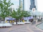 Le 7 août, les pratiquants de Falun Gong ont organisé des pratiques de groupes près de « Canada Place Hotel » dans le centre-ville de Vancouver où le Ministre chinois du commerce, M. Lu Fuyuan, était logé. Ils ont déployés des banderoles pour protester contre les quatres années de persécution du Falun Gong par le régime de Jiang et ont bien profité de cette opportunité pour clarifier les faits.