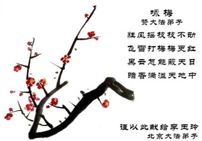 Yuling nous a légué sa pure compassion, les sacrifices complets et non publiés qu’elle a fait pour Dafa, et l’aide altruiste qu’elle a donné aux pratiquants. Yuling nous a quittés. À toutes les fois que je dois traverser le chemin où nous nous rencontrions, je me souviens d’elle portant toujours de larges et de petits sacs de littérature. Je ne peux m’empêcher de regarder les endroits où elle se tenait debout et de souhaiter qu’elle y soit encore là, à nous sourire. Son visage était rouge du froid glacial du vent et il ressemblait à des bourgeons de fleurs de prunes qui s’épanouissent dans la neige au froid lugubre.