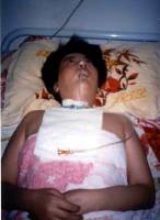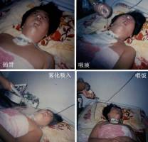 Aujourd'hui, Huiqi a été alitée pendant seize mois. Même après les soins considérables apportés par les membres de sa famille, Huiqi reste paralysée. En ce moment, elle a toujours besoin d'un tube pour respirer et s’alimenter (voir les photos ci-dessous). Les peines et souffrances de Huiqi au cours des seize derniers mois démontrent la cruauté du « bureau 610 » de la province de Hebei.