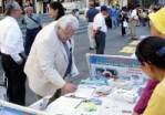 Lorsque les pratiquants tenaient des panneaux de présentation et distribuaient des documents, ils ont aussi rencontré plusieurs New-yorkais, qui après avoir appris la vérité, se renseignaient sérieusement sur le lieu où apprendre les exercices, et comment aider à stopper la persécution brutale. Un jeune homme a eu l’information sur les sites de pratique à New York, et a remercié les pratiquants d’avoir apporté la vérité et de si beaux exercices aux gens de New York. Il espérait que les pratiquants diraient aux autres pratiquants d’être certains de ne pas arrêter leurs activités de clarification de la vérité; ils devaient continuer pour laisser tous les gens de New York apprendre la vérité. Les pratiquants lui ont dit qu’assurément, ils allaient continuer, et ils lui ont aussi dit que ce n’était pas facile pour les pratiquants de Falun Gong de faire cela. Afin d’aider plus de gens de New York à apprendre la vérité, les pratiquants ont voyagé de par le monde en utilisant leurs propres économies et leur temps de vacances pour se joindre aux activités. Le jeune homme a hoché de la tête et a serré la main aux pratiquants pour exprimer ses remerciements et a dit, « Vous êtes remarquables ».