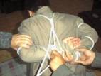 13. Frapper le fessier avec des cordes en nylon mouillées
