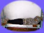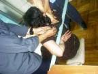En 2003, j'ai été envoyée au camp de travaux forcés de Jiamusi. Pendant 25 jours, mes mains ont été menottées derrière mon dos, et j'ai été forcée de m'asseoir sur un plancher de briques (voir les schémas 1 et 2). Pendant cette période, je ne pouvais pas me laver et la nuit, les fenêtres étaient intentionnellement laissées ouvertes de sorte que l’endroit devienne très froid. J'ai été menottée dans une position qui m'a forcée à m'asseoir les jambes droites. Plusieurs pratiquantes et moi avions la diarrhée dûe au fait que nous étions assises par terre tout le temps et cependant on ne nous a pas permis d’aller aux toilettes. Un pot de chambre a été placé à l'intérieur de la salle, mais le policier Li Yongbo a refusé de me laisser utiliser le pot. Pendant les dix premiers jours, nos mains ont été menottées derrière le dos chaque nuit et mes mains ont enflé beaucoup. Plus tard, nous avons été menottés les mains derrière le dos pour la première partie de la nuit et menottées en avant pour le reste de la nuit (le schéma 3). Nous avons été également forcés d'écrire certaines déclarations tout en étant menottés et lorsque les menottes ont été enlevées, je ne pouvais plus me tenir debout toute seule. Même après plusieurs mois, je ne pouvais toujours pas marcher seule.