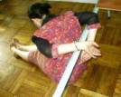 Vers le moi de mai 2003, la pratiquante de Falun Dafa, Mme Su Yanhua a été maltraitée au point qu’elle avait de la difficulté à marcher, alors elle a commencé à pratiquer les exercices du Falun Gong. En voyant cela, le policier Wang Xiurong a battu Su férocement et l’a menottée à un anneau attaché au plancher de béton. Lorsque Mme Su a refusé d’écrire la déclaration de garantie de ne plus pratiquer, elle et une autre pratiquante ont été attachées à une planche de bois. Après les avoir menottées à l’armature du lit, la police les a attachées avec des cordes, (qui ont été conçues pour attacher les bagages des militaires), en la plaçant autour de la poitrine des pratiquantes jusqu’à la taille et les cordes étaient tellement étroitement attachées que les pratiquantes avaient de la peine à respirer. Leurs jambes ont été également attachées aux armatures du lit. Elles ont été étendues sur des panneaux, chacun mesurait environ 25 centimètres (environ 10 po.) de long et les deux planches étaient à 15 centimètres (6 po.) écartées de part et d’autre. Mme Su et l'autre pratiquante ont été attachées comme ceci pendant une semaine. En juin 2003, pratiquante Mme Ma Xiaohua a été également attachée de cette manière pendant 28 jours.