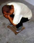 L’image représente le tabouret minuscule fréquemment employé pour torturer les pratiquants de Falun Gong aux camps de travail de Zhangshi, de Longshan et de Masanjia. Le tabouret est fait de plastic dur. On oblige les pratiquants à s’y asseoir jusqu’à ce que leurs fesses deviennent noires et bleues. Certains en attrape même parfois des furoncles.
