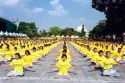 Le festival des sports a commencé avec une démonstration de Falun Gong de mille personnes. Pendant la démonstration, le leader de l’équipe a introduit le Falun Gong et la persécution illégale en Chine et a fait appel aux spectateurs afin qu’ils se préoccupent de ce groupe de bonnes gens. L’audience lui a fait de chaleureux applaudissements.