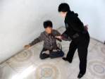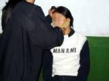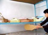 Photo 2 : Frapper le visage avec une batte en bambou : Le camp de ré-éducation par le travail de Heizuizi utilise souvent la batte en bambou pour frapper le visage des pratiquantes. Celles qui sont résolues à pratiquer le Falun Dafa sont particulièrement exposées à cette méthode de torture. Parmi elles, Qu Shuyun, une pratiquante très déterminée de la ville de Jilin, a été battue au visage avec une batte en bambou plusieurs centaines de fois par le capitaine de la 2e division. Tan Chengxiang, une pratiquante de la 2e division, venant de la ville de Shulan, a refusé de se qualifier d’« étudiante de rééducation par le travail » par écrit, et elle a été constamment frappée au visage avec la batte en bambou par le gardien Ma Tianshu. Son visage est devenu rouge et enflé. La division administrative du camp, dirigée par les gardiens Lian Guangri et Yue Jun, frappait souvent violemment les pratiquantes déterminées avec une batte en bambou.