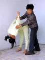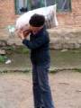 Photo 17 : Porter des haricots : En automne 2001, les détenues du camp de ré-éducation par le travail de Heizuizi ont cueilli des haricots. Si les pratiquantes ne finissaient pas de cueillir les haricots à la fin de la journée, elles devaient porter les sacs de haricots à leurs lieux d’emprisonnement pour continuer le travail. Un sac pesait plus de 50 kg et devait être porté du rez-de-chaussée au 5e étage.