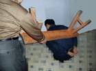 Emploie d'un banc pour frapper le pratiquant de Falun