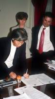 Le procureur général de la Bolivie, avec les officiers de la ville de Sucre, ont reçu la plainte à la date établie du 16 novembre. L’action en justice, qui vise aussi Jiang Zemin et Luo Gan pour avoir soumis des personnes à l’esclavage ou à un état similaire, pour menace, pour violation de la liberté et pour avoir affecté à une persécution brutale des millions de pratiquants du Falun Gong qui ont subi d’horribles tortures ainsi que pour d’autres pratiques cruelles dans des camps de travail chinois. La responsabilité directe de ces crimes vient de Jiang Zemin et Luo Gan, de la direction du Bureau 610 qui a été chargé de coordonner et de conduire la persécution des pratiquants de Falun Gong au travers de toute la Chine.