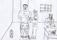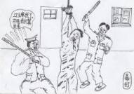 Afin de forcer les pratiquants de Falun Dafa à donner leur nom et adresse, la police leur tord les bras vers l’arrière dans la position la plus extrême, leur tire les cheveux et leur frappe la tête contre les murs. Parfois la police pousse de force la tête du pratiquant dans une cuvette de toilette remplie d’excréments.