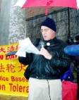 Le pratiquant de Falun Gong, professeur au Collège Métropolitain de New York, M. Feng Keran a dit : « Le porte-parole du Ministère des Affaires Étrangères de la Chine, Zhang Qiyue, a prétendu il y a quelques jours que les améliorations des droits humains en Chine étaient évidents pour tous. C’est effectivement évident pour tous ! Depuis les cinq dernières années, cent millions de pratiquants de Falun Gong qui se cultivent selon Vérité – Compassion – Tolérance ont été persécutés en Chine. Les membres de leur famille et leurs amis sont aussi incriminés. Cela n’est plus une question de cent millions de personnes, puisque tant de gens sont incriminés. Au moins 1000 personnes ont été torturées à mort, plusieurs milliers ont été envoyées de force dans des hôpitaux psychiatriques et on leur a injecté des drogues qui endommagent le système nerveux. Plus de 100 000 personnes ont été illégalement emprisonnées dans les camps de travaux forcés. D’innombrables familles sont torturées mentalement et financièrement extorquées. Ceci est ce que Jiang Zemin a prétendu être « La meilleure période des droits humains ».