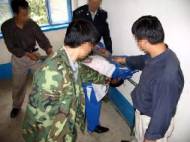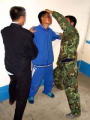 Un jour au mois d’août 2001, lorsque un policier de la prison et quelques criminels ont sauvagement battu un pratiquant de 16 ans, j’ai crié très fort dans la cellule : « Arrêtez de le battre! C’est contre la loi! » La police et trois autres criminels sont accourus dans la cellule et m’ont frappé à coups de poings et à coups de pieds. Plus tard ils m’ont amené au bureau de police de la prison. Le chef de la section administrative m’a frappé très fort au visage. Tout de suite, mon nez et ma bouche ont commencé à saigner. Ils m’ont alors frappé la tête contre le mur. Un policier a hurlé : « C’est ce qu’on appelle les droits de l’homme. » Le chef de la section d’éducation m’a appelé à l’extérieur et m’a dit : « Si tu meures ici, comment penses-tu nous poursuivre? »