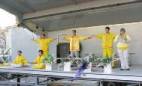 L'après-midi, cinq pratiquants ont fait des démonstrations des exercices de Falun Gong sur la scène, accompagnés de la musique, alors qu'un pratiquant occidental parlait de l'histoire du Falun Gong et de la persécution en Chine. Beaucoup de gens ont été attirés par les mouvements paisibles et certains ont même imité les exercices devant la scène. Beaucoup de gens ont accepté les documents imprimés.