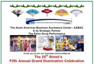 Le jour de l'événement, le gouvernement de la ville a installé une scène sur la 25ème rue et plusieurs stands dans le bâtiment voisin du service public pour fournir la nourriture, des jouets pour les enfants et des documents d'introduction à la sécurité à la maison. Le Falun Gong était la seule organisation à but non lucratif à installer un stand dans le bâtiment. Le gouvernement a également fourni une télévision pour visionner la vidéo d'enseignement des exercices.