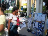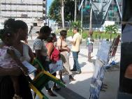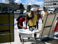 Le samedi matin, le centre ville de Pointe à Pitre est très animé. Les photos et les scènes de torture ont attiré beaucoup de monde et ont permis au gens de s'approcher du stand pour en savoir plus. Les pratiquants ont pu ainsi exposer les crimes commis à l'encontre des pratiquants de Falun Gong en Chine.
