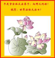 Tous les pratiquants du Falun Dafa à Pingdu, province Shandong souhaitent un joyeux anniversaire à notre Bienveillant Maître