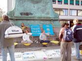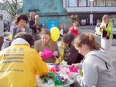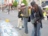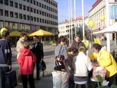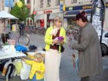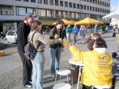 Afin de célébrer ce grand jour, les pratiquants de Gothenburg, Lerum et Nossebro se sont rassemblés sur Kings Sport Square au centre de Gothenburg pour informer les gens à propos de Falun Dafa et de la persécution de ceux qui le pratiquent en Chine en affichant des documents, jouant de la musique, chantant, et distribuant des ballons et des fleurs de lotus en origami.