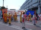 Le 13 mai ne marque pas seulement la cinquième journée mondiale de Falun Dafa mais commémore également les douze ans de la transmission du Falun Gong au public par Maître Li Hongzhi. Les pratiquants ont choisi de célébrer cette journée spéciale tout en partageant les meilleurs aspects de la culture chinoise avec les gens de Dublin et les nombreux touristes visitant la ville. En ouverture une pièce traditionnelle de tambours à la taille. En Chine elle est une célébration de la récolte et traditionnellement reconnue pour chasser les fantômes et les mauvais esprits. Puis vint la danse traditionnelle chinoise à l’éventail et la danse des ombrelles. Une jeune pratiquante joua une pièce musicale au Xiao (flûte chinoise) et il y eut également une chanson chantée par une petite chorale des pratiquants irlandais et anglais.
