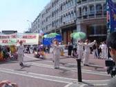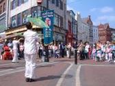 Le dimanche 16 mai 2004, les pratiquants de Dafa d’Angleterre se sont joints aux pratiquants irlandais pour une après-midi d’activités célébrant la cinquième journée mondiale de Falun Dafa. La journée était très ensoleillée de ce fait le centre ville de Dublin était bondé. Les pratiquants ont distribué des brochures et parlèrent avec les gens des bénéfices de la pratique de Falun Dafa et de la violente persécution qui a lieu en Chine. La journée commença avec une démonstration de la série des cinq exercices de Falun Gong. Beaucoup de gens s’arrêtèrent regarder les mouvements gracieux et paisibles au son de la jolie musique chinoise.