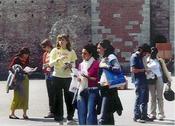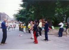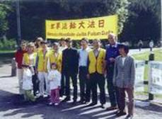 C’était une journée de début d’été, le soleil brillait sans partage il y avait des odeurs de fleurs et sous l’ombre des arbres d’un tout nouveau vert les bannières avec “Falun Dafa est Bon” et “ journée Mondiale de Falun Dafa ” étaient accrochées haut et les touristes passaient en un flux continu. Beaucoup de gens s’arrêtaient pour regarder les démonstrations d'exercices et ont pris l'initiative de demander des imprimés de Dafa et davantage de renseignements. Quelques-uns ont aussi demandé à apprendre les exercices. Une dame de quatre-vingt-trois ans et son mari étaient déjà venus ici trois fois pour apprendre les exercices. Certains regardant les photos exposées sur les panneaux s’interrogeaient sur la réalité d’une telle persécution. Quelques personnes ayant une relation prédestinée ont demandé à lire les enseignements de Dafa. Quelques touristes de Chine ont été bouleversés en voyant les bannières avec les mots, “Les Lois du Ciel sont Claires, procès de Jiang Zemin” et “procès de Luo Gan, Liu Jing, Zhou Yongkang.” Ils nous ont posé beaucoup de questions sur les choses qui ils ne pouvaient pas comprendre et ont lu avec soin les informations que nous leur avons données. Ils sont partis après avoir compris la vérité et nous ont fait un signe de gratitude. Un autre touriste de Taiwan a dit qu'il trouverait un emplacement de pratique et qu’il commencerait à pratiquer en revenant à Taiwan. Il est vrai que “si on a une relation prédestinée, on obtiendra la Loi même à des milliers de kilomètres.”