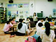 Chaque mercredi ou samedi, plusieurs enfants de Taoyuan, Zhongli et Hsinchu amènent de la documentation clarifiant la vérité dans leurs petits sacs et assistent à un cours pour de jeunes pratiquants. Après plus d’une heure d’étude de la Loi et d’échange d’expériences, les jeunes pratiquants sortent avec les adultes pour aller à différents lieux touristiques et à d’autres endroits ou il se trouve beaucoup de gens et ils pratiquent les exercices, introduisent le Falun Dafa et distribuent des documents expliquant les faits.