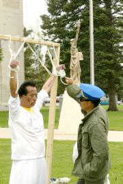 La « Tournée en fourgeonette à travers le pays pour amener Jiang en Justice » qu’est partie de San Francisco, Californie, est arrivée à Cheyenne, Wyoming le 18 mai 2004. Les membres de la tournée ont démontré quelques-unes des tortures auxquelles sont assujettis les pratiquants du Falun Gong, en Chine, devant la bâtiment de la Cour suprême de Wyoming, dans l’espoir que les gens peuvent donner leur appui pour arrêter la persécution du Falun Gong en Chine. La Wyoming Tribune a reporté l’activité le 19 mai, dans la section nouvelle importante.