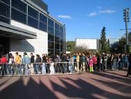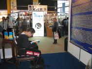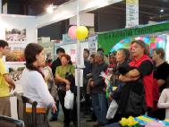 Le hall d’exhibition était rempli chaque jour, particulièrement les fins de semaine. Selon les règlements de la foire, on ne pouvait distribuer des dépliants que près de notre propre kiosque. Au kiosque, les pratiquants ont distribué 130 000 dépliants d’introduction de Dafa et de clarification de la vérité. Parfois, lorsque les pratiquants qui distribuaient des dépliants étaient occupés à clarifier les faits et à répondre aux questions, les gens faisaient alors la file pour demander les dépliants. Plusieurs personnes sont revenues chercher des dépliants après avoir hâtivement passé par là. Tous ceux qui acceptaient les dépliants disaient avec le sourire « gracias » ou « mucho gracias » (« merci » ou « merci beaucoup).