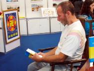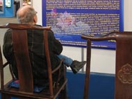 Un pratiquant a mis une chaise en face de la bannière espagnole du « Lun Yu ». À chaque jour, lorsque la foire venait de commencer et qu’il n’y avait pas tant de gens, il y avait toujours quelqu'un qui venait s’asseoir et lire « Lun Yu ». Ensuite ils lisaient Zhuan Falun. Un jeune home de 16 ans s’est assis et a lu Zhuan Falun pendant environ une heure. Lorsqu’on lui a demandé s’il aimerait acheter une copie du livre, il a répondu que ses moyens ne lui permettaient pas. Le pratiquant lui a ensuite prêté un livre. Il était très ému et il a dit qu’il remettrait définitivement le livre. Cinq jours plus tard, il est effectivement revenu et a remis le livre. Il vivait assez loin. Mais il est revenu dans la soirée exprès pour remettre le livre et se joindre au séminaire d’introduction. Des religieux et des religieuses se sont aussi assis pour lire Lun Yu et Zhuan Falun.