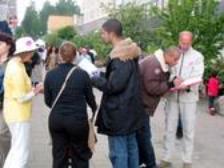 Site Clartés et Sagesse]Le 30 mai 2004, les pratiquants suédois ont fait des démonstrations des exercices, exposé des photos, interprété des pièces musicales, et donné des informations tout en parlant avec les gens au Carnaval d’Hammarkullen. Ils sont venus nombreux apprendre la vérité et comment pratiquer le Falun Gong.