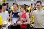 En voyant tant de gens pratiquer les exercices du Falun Gong sur la place, un couple occidental a demandé à une dame tout près des explications sur ce qu’ils faisaient. La dame a répondu qu’ils pratiquent le Falun Gong, que ceci est bien bon pour le corps et l’esprit. Le couple a répondu, « Etes-vous avec eux? » La dame a répondu, « C’est possible, j’espère que je le serai. »