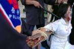 Tout en observant la reconstitution de la torture, un couple d’occidentaux étonnés a demandé, « Est-ce que ceci est réel? Comment est-ce possible ? Une telle brutalité! » Ils ont demandé pourquoi ils avaient été emprisonnés. Les pratiquants de Falun Gong leur ont dit que toutes ces démonstrations étaient vraies. Depuis que le régime de Jiang a lancé la persécution des pratiquants de Falun Gong en 1999, au moins 1006 pratiquants sont morts en raison de la répression. Des pratiquants innombrables ont été battus et torturés. Beaucoup de pratiquants ont été forcés de quitter leur domicile devenant des sans abri pour éviter l’arrestation. Ils ont été expulsés du Parti, des écoles et congédiés de leurs emplois.
