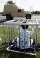 Falun Gong (nouvelles – sites Internet) Le pratiquant Fengjuan Tan s’assied dans une petite cage répétant la pratique de torture dans les prisons chinoises, tel que le groupe a démontré à Brunswick, Georgie, le 8 juin, 2004 près du site du Sommet G8. (Reuters photo)