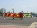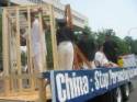 Au milieu de la procession il y avait un char sur lesquel on mettait en scène les tortures que subissent les pratiquants de Falun Gong en Chine.