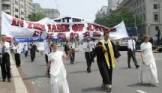 Depuis le 20 juillet 2004 des pratiquants venant des quatre coins du globe se sont réunis à Washington DC pour une série d’activités dont entre autres un rassemblement, une parade, une veillée pour exiger la fin du terrorisme d’état imposé par le groupe de Jiang Zemin et de la persécution et des assassinats des pratiquants de Falun Gong.