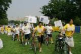Un groupe d’adolescents canadien a rallié Washington DC à vélo depuis Toronto dans le but d’exposer la persécution que le groupe de Jiang Zemin fait subir aux enfants pratiquant le Falun Gong. Le trajet est de 1200 km et il a leur a fallu 23 jours pour accomplir leur périple. Ils sont arrivés à Washington DC le 22 juillet et ont invité des personnes et des adolescents de Washington à se joindre à eux le jour de leur arrivée dans la capitale. Des adultes et des adolescents de Washington DC on rejoint cette équipe de cyclistes dans le parc de Chevy Chase Circle qui se situe entre Maryland et DC, et ont fait une parade de 13 km de long intitulée « parade pour sauver les enfants qui pratiquent le Falun Gong », donnant par la même occasion le coup d’envoi à la série des activités du 20 juillet à Washington DC.