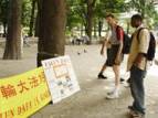 Le matin, nous sommes allés à Central Park pour clarifier la vérité. Nous avons entendu dire qu’un festival de grande envergure devait y avoir lieu et beaucoup de gens allaient y assister, mais il n’y avait que quelques personnes quand nous sommes arrivés. Bientôt il commença à pleuvoir. Nous étions un peu mal à l’aise car il était difficile de distribuer des dépliants sous la pluie.