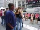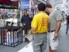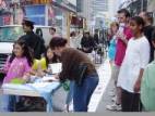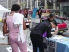 A environ 13 heures, quand j’ai essayé d’expliquer les faits sur le Falun Gong à un homme, il a dit : « Vous ne devriez pas exposer les méthodes de torture dans les rues. Ce n’est pas bien pour les enfants qui regardent. » Il a montré quelques jeunes pratiquants et a dit : « Vous voyez, ce sont des enfants. » Pendant un moment, je ne savais pas quoi répondre.
