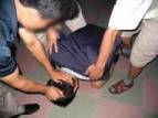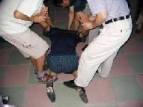 Le surveillant en chef, Wang Jiali, a déchiré les livres de Dafa et les photos du Maître devant moi. Je leur ai dit franchement qu'ils seraient jugés responsables de ce qu'ils faisaient. Ils ont alors commencé à me battre, et j'ai fait une grève de faim pour protester. Le surveillant en chef Wang Jiali m'a battu impitoyablement au visage et à la tête. Je lui ai dit sévèrement : « Arrêtez ! Vous violez délibérément la loi. Vous serez tenus totalement responsable pour de ce que vous êtes en train de faire! » Wang Jiali a fixé mon front en disant : «Si vous ne me dites pas la source de la documentation et des disques portatifs, je vous enverrai en prison. ».J'ai répondu : « Vous ne pouvez pas envoyer de bonnes personnes comme nous en prison. Je n’irai même pas un seul jour en prison. » Au lieu de cela, ce sont des gens comme vous qui finirez en prison. » Le policier Guo Qiang a également commencé à me battre. Quand j'ai crié : « La police bat de bonnes personnes » plusieurs policiers se sont précipités pour l'aider. Deux d'entre eux ont piétiné mes jambes et ont donné des coups de pied sur mes genoux et sur mes chevilles jusqu'à ce que je ne puisse plus bouger. Les deux autres policiers ont tiré mes menottes (j'étais menotté les mains derrière le dos) aussi haut que possible, alors qu'un autre policier me tenait la tête. Je ne pouvais pas me déplacer du tout, et mon corps semblait vouloir se diviser en deux. J'ai senti la douleur profondément dans mes joints et mes ligaments. Ils se sont arrêtés quand ils ont vu que j'étais silencieux. C’était si douloureux que mon corps entier tremblait. Je me suis étendu sur le plancher et je ne pouvais pas me déplacer du tout. Wang Jiali, Guo Qiang, Liu Guoping et les autres policiers m'ont interrogé encore, exigeant la source des matériaux et des disques portatifs. J'étais très déterminé et je les ai averti : « Je me souviendrai de vous. Vous devez être jugé responsables de ce que vous avez fait ici aujourd’hui. Sous les ordres de Wang Jiali ils m’ont encore torturé comme ils avaient fait auparavant. Wang Jiali s’est aussi agrippé à moi et a serré toutes mes côtes. J’ai presque perdu connaissance à cause de la douleur.