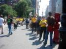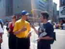 (Minghui.org) Le 29 août, la ville de New York était extrêmement achalandée en raison de la Convention nationale républicaine (RNC). Afin de faire connaître à plus de gens la vérité sur le Falun Dafa et la nature perverse de la persécution brutale du Falun Gong en Chine, plus de 1000 pratiquants du monde entier sont venus à la Grosse Pomme (NY). En outre, des expositions contre la torture dans différents parcs, aux sites touristiques et dans les secteurs fréquentés pour les affaires, les pratiquants ont formé des « Coins de Courage », aux intersections des rues achalandées telles que la 34e et la 42e rues du centre-ville de Manhattan pour faire appel pour la justice. Puisque la RNC projetait un grand rassemblement au Plaza qui se situe au coin de la 8e Avenue et la 34e rue, les deux principales artères adjacentes pour la rencontre, étaient très achalandées. Vers les 14h00 heures, plus de 10.000 personnes ont commencé une marche de protestation, chantant, faisant des discours, battant du tambour – cela ressemblait à une vague de l'océan. Cependant, aux coins des rues en marge de ce flot humain, il y avait des groupes de personnes vêtus de t-shirts jaunes qui étaient très paisibles. Ils souriaient tout le temps et parlaient rarement fort. La majeure partie du temps, ils affichaient tout simplement leurs pancartes et distribuaient leurs dépliants aux piétons. Leur sérénité formait un contraste dramatique avec le vacarme qui sévissait et a souvent attirait l'attention et les félicitations des gens. Parfois, de ci et de là, les gens détournaient leur attention du défilé, vers les caractères imprimés sur ces t-shirts jaunes de : « Cessez la persécution de Falun Gong » Certains se sont avancés pour lire les titres des dépliants. Parmi ceux qui ont pris des dépliants, une partie significative de ceux-ci ont dit qu'ils avaient déjà entendu des histoires au sujet du Falun Gong. Avec une expression sympathique, une dame d’une quarantaine d’années a dit : « Le Falun Gong, je le connais. La persécution en Chine est trop brutale. ». «Oh, je le sais... » de dire une autre dame âgée. Elle secouait tristement la tête lentement en prenant un journal offert par un pratiquant, et elle a dit : « Je le lirai à la maison, merci! » Un gentilhomme plus âgé a lu son dépliant de Falun Gong avec un sourire et hocha de la tête pour saluer les pratiquants. Certains semblaient savoir que ces gens qui portaient des chemises jaunes étaient des pratiquants de Falun Gong et ils prenaient des dépliants sans hésitation. D'autres, cependant, étaient relativement prudents. Ils s’approchaient des pratiquants pour s'assurer : « Oui, c’est le Falun Gong » Puis, ils prenaient les dépliants avec joie. Dans la foule, il y avait un Chinois. Quand il s'est rendu compte qu'on lui avait présenté le « Reader Falun Dafa » , il semblait avoir découvert quelque chose d’important et il l’a pris avec sérieux. Plus tard, une Chinoise est venue. Ses yeux brillaient aussi quand elle a vu le « Reader Falun Dafa » et l'a pris avec joie. Curieusement, une jeune dame noire a saisi le journal de la main du pratiquant. Quand elle a constaté qu’il n’y avait qu’une copie, elle a rapidement dit : « Donnez-moi une autre copie, mon ami en veut une également » Elle l’a alors saisie rapidement encore une fois et s’est sauvée tout aussi vite. Des occasions comme celles-là n’étaient pas rares où les gens demandaient plus de documentation pour des amis et des parents. Quelques occidentaux ont également demandé de la documentation de Falun Gong en chinois: « Nous avons quelques Chinois au bureau, je pense qu'ils aimeraient également savoir. » « J’en ai déjà un. » Nous avons entendu cette phrase assez souvent. Les gens qui disaient cela hochaient de la tête et souriaient pour saluer les pratiquants. Certains piétons fouillaient même la documentation dans les mains des pratiquants pendant qu’ils disaient, « Ah! J’ai celui-là également. Non, je n’ai pas celui-là. » Puis, ils prenaient la documentation, remerciaient les pratiquants et s’en allaient. Il y avait également beaucoup de gens qui n'ont jamais entendu parler du Falun Gong auparavant. Une dame a été attirée par un dépliant avec une photo d'une petite fille en méditation. Tout en lisant le dépliant, elle a posé beaucoup de questions à un pratiquant. Elle a également demandé où elle pouvait apprendre les exercices de Falun Gong. Le pratiquant lui a parlé au sujet de la situation du Falun Dafa à travers le monde et de la persécution. Cette dame a été surprise et sous le choc, en entendant les faits brutaux de la persécution. Les deux autres compagnons de cette dame ont été attirés par un dépliant qui disait : « De bonnes personnes sont persécutées » et ils ont demandé la raison. Lorsqu’ils ont appris que Jiang persécutait les bonnes personnes en raison de sa jalousie et que par ce fait, bien des pratiquants avaient été torturés à mort, ils ont été outrés. Lorsqu’ils sont partis ils ont remercié les pratiquants encore et encore pour cette dissémination d’information dans la Ville de New York et pour leur avoir permis de savoir au sujet de cette persécution à grande échelle. De 11h00 jusqu’à 18h00, comme le soleil se levait, Manhattan est devenu de plus en plus occupé, puis comme soleil se couchait, la foule s’est dispersée peu à peu. Cependant, les pratiquants aux « Coins de Courage » s’y sont tenus continuellement tout le temps pour répandre la vérité, la justice et l'espoir, tranquillement, sans slogan, ni aucun chant --- seulement avec des sourires et des conversations paisibles. Je me rappelle que le célèbre ténor, M. Guan Guimin a déjà chanté une chanson des pratiquants de Falun Gong, « Assis-toi près de moi » « Assis-toi près de moi En fermant tes yeux Ensemble en silence Nous demandons La fin d