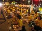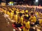 Tous ensemble, environ 1000 pratiquants de Falun Gong ont participé à la veillée aux chandelles. Des milliers de points lumineux brillaient. L'atmosphère était solennelle et chaleureuse. La plupart des pratiquants portaient un t-shirt jaune, ils s'étaient disposés de façon ordonnée, certains pratiquaient les exercices de Falun Gong et certains envoyaient les pensées droites. Ils respiraient la paix et la détermination.