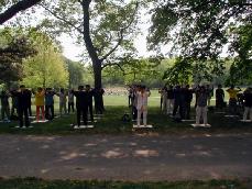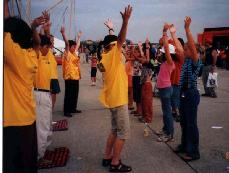 Accompagnés par une musique harmonieuse, les pratiquants de Falun Gong pratiquent les exercices doucement et paisiblement par groupe. Une telle scène n'est pas rare. De la Russie au Groenland, de l'Europe du Nord à l'Asie du sud, de l'Amérique du nord, l'Amérique du sud, l’Australie à l'Afrique, quel que soit la langue ou la nationalité, vous pouvez trouver le Falun Gong.