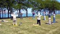 Groupe de pratique près du lac de Michigan à Chicago |