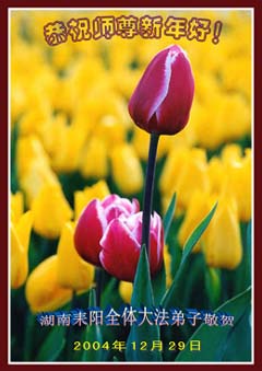 Bonne et Heureuse Année! Maître, vous avez travaillé si fort! Tous les pratiquants de Liaohe Oilfield souhaitent respectueusement au grand et vénérable Maître une Bonne et Heureuse Année ! Nous avons encore une fois traversé un an de tempêtes sur la voie de la cultivation de Dafa. Les disciples ont de hâte de vous voir bientôt. S’il vous plaît Maître, soyez assurés que vos disciples ont la ferme volonté d’adhérer aux exigences requises par le Maître en faisant bien les trois choses et en étant dignes d’être des disciples de la période de la rectification de Dafa. Tous les pratiquants de Liaohe Oilfield Jour de l’An 2005 Les pratiquants de la ville de Shenzhen, province de Guangdong, souhaitent au vénérable Maître une Bonne et Heureuse Année (poème omis) Tous les pratiquants de la province de Anhui souhaitent respectueusement au grand et bienveillant Maître une Bonne et Heureuse Année! Les gens du monde se réveillent, et les disciples on la ferme intention de saisir le temps pour clarifier la vérité, sauver les êtres et bien faire les trois choses, penser et agir avec droiture et être dignes du titre, « Disciples de la période de rectification de la loi » Tous les pratiquants de la province de Anhui Heshi Le 28 décembre 2004 Tous les pratiquants de la ville de Deyang, province de Sichuan souhaitent au vénérable Maître une Bonne et Heureuse Année !