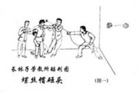 Le tortionnaire entoure de laine l’écrou d’une grosse vis, l’accroche à une corde, et enfin le fait tournoyer en l’air avec force pour frapper de manière répétée la tête du pratiquant, lui laissant de nombreux trous dans le crâne. La tête du pratiquant le fait tellement souffrir qu’il a l’impression qu’il a le crâne complètement ouvert. Le pratiquant peut alors facilement subir une dépression nerveuse. Le pratiquant du Falun Gong Yu Fuqi a reçu plus de 20 fractures à la tête ce qui lui a causé des syndromes de commotion cérébrale graves. (Voir l’illustration 1)
