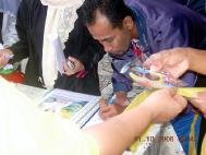 De nombreuses personnes ont été trompés par la propagande de l’équipe de Jiang et avaient de mauvaises perceptions sur ce qu’est le Falun Gong. Après avoir vu l’exposition, ils ont appris la grâce de Dafa et les faits concernant la persécution. Certains ont signé les documents contre la persécution.