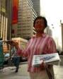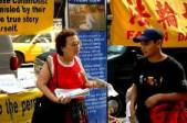 Mme Yao, 70 ans et son mari de la Nouvelle–Zélande, sont venus à New York après un vol de plus de 30 heures. Ils se sont tenus sur la rue à Manhattan pour clarifier la vérité après un repos de trois heures. Chaque jour, ils se tiennent debout environ 10 heures et inlassables, expliquent les faits aux passants.