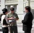 A midi le 27 septembre 2005, Xia Deren, maire actuel de Dalian, a mené une délégation [chinoise] pour rencontrer le maire Jerry Brown de la municipalité d’Oakland. Les pratiquants de Falun Gong de la région de la Baie ont rencontré le groupe de Xia, à l’Hôtel de ville. Les pratiquants lui ont remis le jugement de la Cour Fédérale des Etats-Unis.
