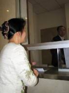 Après avoir lu la déclaration à haute voix en chinois et en anglais, Duan et un autre pratiquant sont entrés dans le consulat et ils ont tendu la déclaration à un employé à travers une fenêtre de bureau.