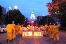 Le 21 octobre 2005, en soirée, les pratiquants de Falun Gong au Wisconsin ont participé pour la première fois, au Défilé Homecoming à l'université du Wisconsin, à Madison. Les spectateurs étaient étonnés de voir le char allégorique de Falun Gong magnifiquement décoré et ils l’ont applaudi chaudement et lui ont fait des éloges: « Il est tellement beau! » « Réellement magnifique! »