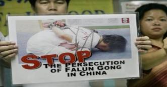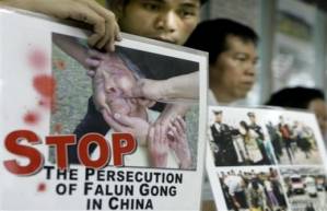 Les pratiquants de Falun Gong tiennent des photos démontrant la torture, durant une conférence de presse dans la banlieue de la ville de Pasig à l’est de Manille, jeudi 15 septembre 2005. (AP photo/Aaron Favila)